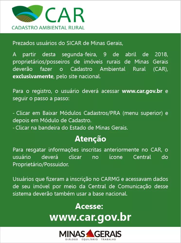Atenção: Cadastro Ambiental Rural passa a ser realizado pelo site nacional