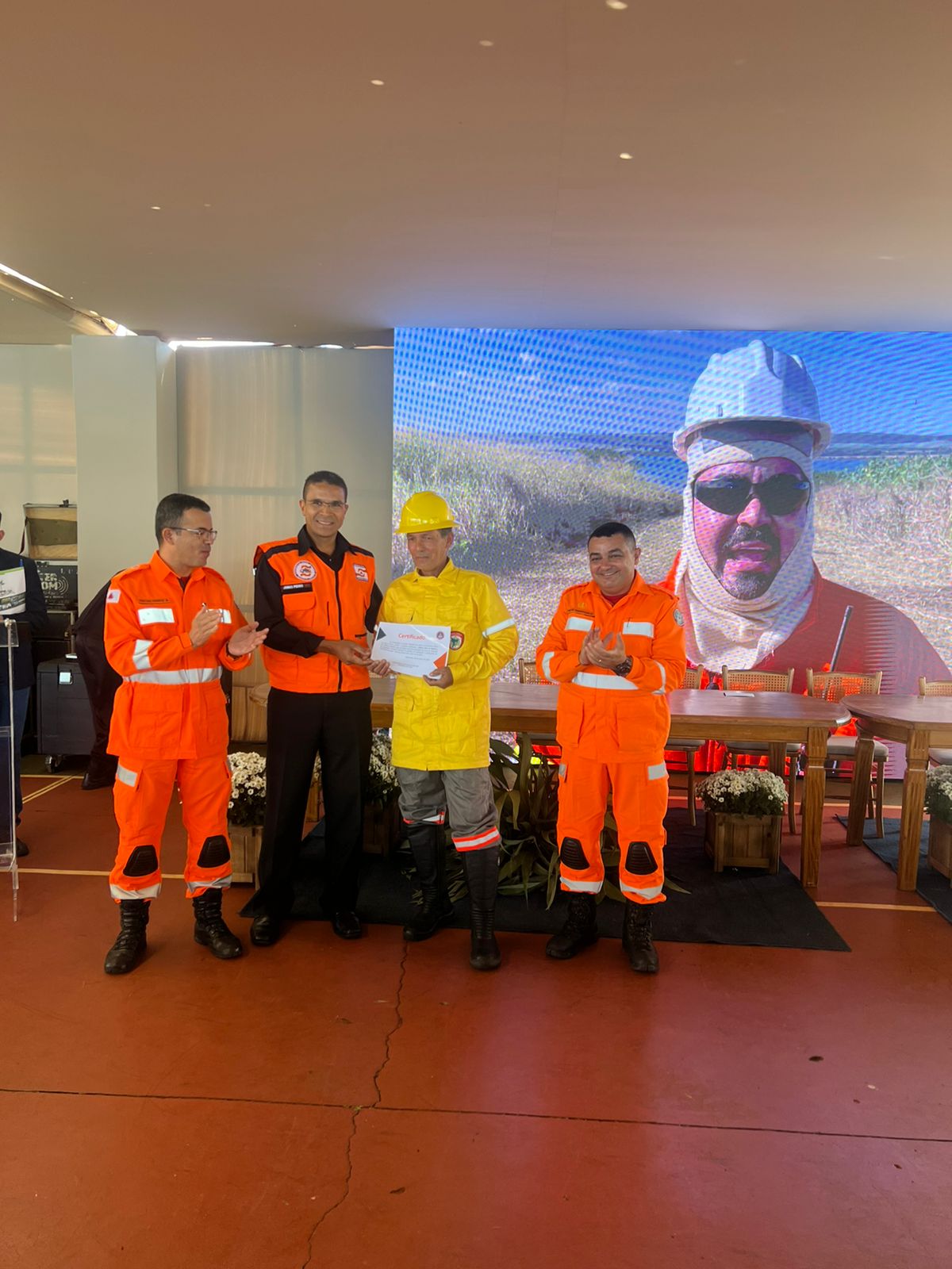 O ponto alto da tarde foi o simulado de proteção e defesa civil. Foi criado um cenário de rompimento da barragem de Itumbiara-GO e realizados os procedimentos de evacuação da população da área do mapa de inundação. Também foram apresentados os procedimentos de busca e salvamento de vítimas.