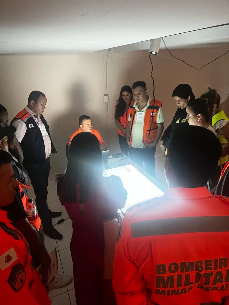 Esta simulação hipotética foi uma das atividades apresentadas aos participantes do 1º Workshop de Preparação para o Período Chuvoso organizado pela Coordenadoria Intermunicipal para a Redução do Risco de Desastres (CIRRD), em parceria com o Corpo de Bombeiros Militar de Minas Gerais (CBMMG).