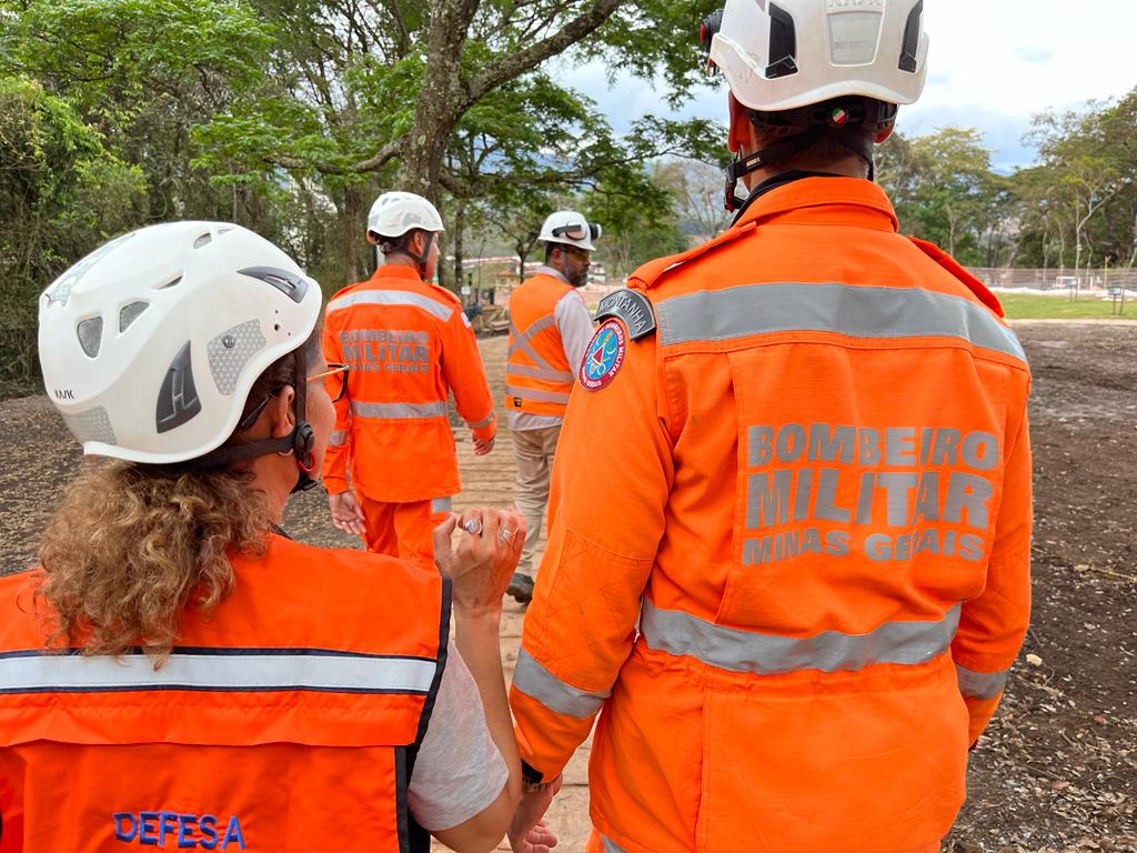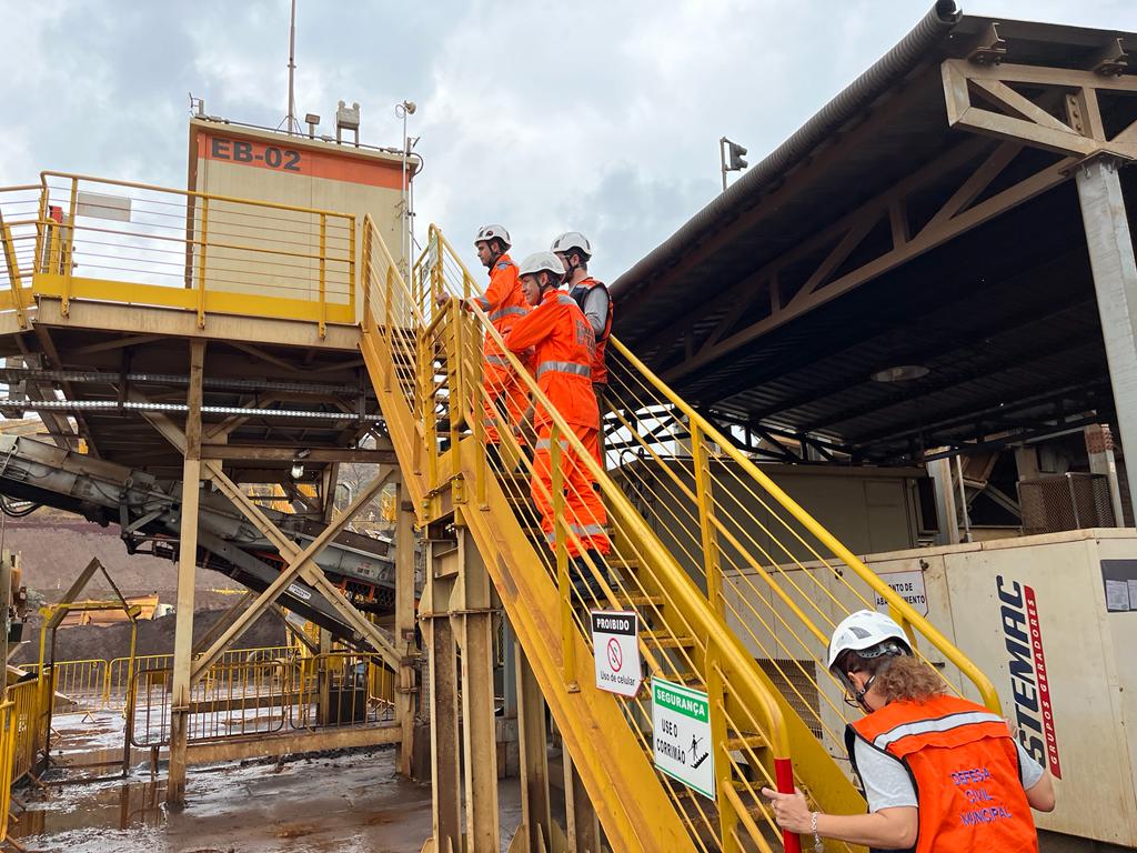 Na chegada à base Bravo, a equipe foi recepcionada pelo Major Enock (Comandante do Incidente) e pelo Tenente Queiroz (Oficial de Operações). A seguir foi realizada uma visita de campo, destacando-se os seguintes pontos: Posto de Comando do Incidente (PC/Base Bravo) onde foi possível conhecer as instalações padronizadas do Sistema de Comando de Operações (SCO); O Terminal de Carga do Feijão (TCF), no qual estão localizadas as Estações de Busca (EB), num total de 5 estações; O mirante do TCF, de onde se tem uma visão privilegiada de todas as Estações de Busca; Estações de busca onde foi demonstrado o funcionamento da estratégia de Busca nº 08 (atual), com utilização das EB’s e os locais de depósito temporário de materiais; A Barragem BVI (água), que na data do evento apresentou situação de risco de rompimento, uma vez que parte de sua base foi arrastada pelos rejeitos oriundos da barragem B1 (rompida); A ombreira da Barragem B1 (que rompeu); O mirante da Cava do Feijão, onde se tem uma vista privilegiada da mina do Feijão, onde se extrai os minérios. Após intervalo para almoço, os integrantes do corpo técnico da CIRRD participaram de uma apresentação realizada pelo Major Enock (Comandante do Incidente) e pelo Tenente Folha (Oficial de Planejamento), onde foram explanados alguns aspectos relevantes da operação, tais como: Estratégias de buscas utilizadas, o SCO estabelecido, técnicas e materiais utilizados, emprego de tropa, apoio de agências, dentre outros. Após a apresentação, os integrantes do corpo técnico da CIRRD voltaram a campo, acompanhados do Tenente Queiroz, onde os seguintes locais foram visitados: retirada de material/rejeito (Remansos 1 e 3, Dique 2, Parque das Cachoeiras, Canvas) e, por fim o Memorial das vítimas do rompimento da barragem, em fase final de construção. A visita se demonstrou importante para que a equipe técnica entendesse com mais profundidade a envergadura e impactos socioambientais provocados pelo rompimento da barragem e, ainda, o nível de organização e resposta ao evento. Da experiência espera-se agregar além do conhecimento, uma visão de todo ciclo de PDC (proteção e Defesa Civil), traduzindo-se na gestão do risco de desastres, bem como no seu gerenciamento, quando não puder ser evitado.