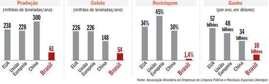 Quanto mais rico o país, mais lixo se joga fora, mais lixo se recolhe, mais lixo se reaproveita e mais dinheiro se ganha com isso. Compare