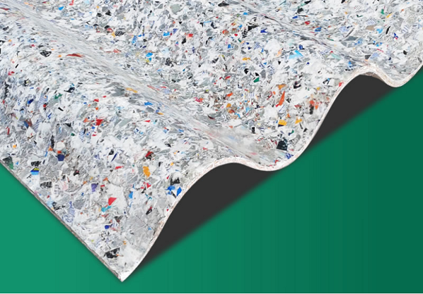 Dentre os processos de reciclagem das embalagens Tetra Pak, existe um que é um processo que permite que o plástico e o alumínio sejam picotados e passam por uma secagem. Então são cobertos por uma camada de filme plástico e prensado a quente. O polietileno derrete e adere ao alumínio formando uma resistente chapa. Ainda quente a chapa é colocada no molde da telha, onde adquire o formato de telha. As telhas são compostas basicamente por alumínio, Pet, Polietileno e Polinylon.