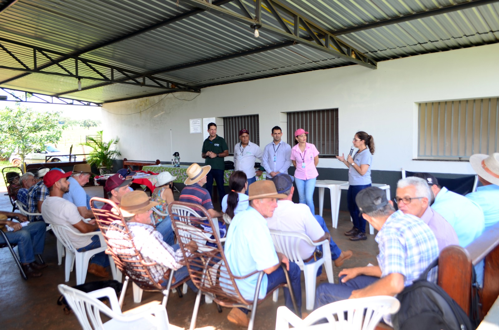 Aconteceu ontem, dia 02 de Fevereiro de 2023, em Araporã-MG, uma reunião com os produtores rurais do município, evento organizado pela Secretaria de Agricultura com o objetivo de levar informações técnicas sobre a importância dos produtores registrarem os estabelecimentos e seus produtos. Além da secretária de Agricultura do município Carla Ferreira de O. Teixeira, participaram o médico veterinário e coordenador do SIM-CIDES Fábio Júnio Neris Silva e a secretária Executiva do CIDES Cristina Martins. A reunião aconteceu na Fazenda Passa Três no município de Araporã, onde estiveram presentes também os técnicos responsáveis pela sede e extensão da EMATER, Teriovaldo F. Marques e Adriano de Araújo.