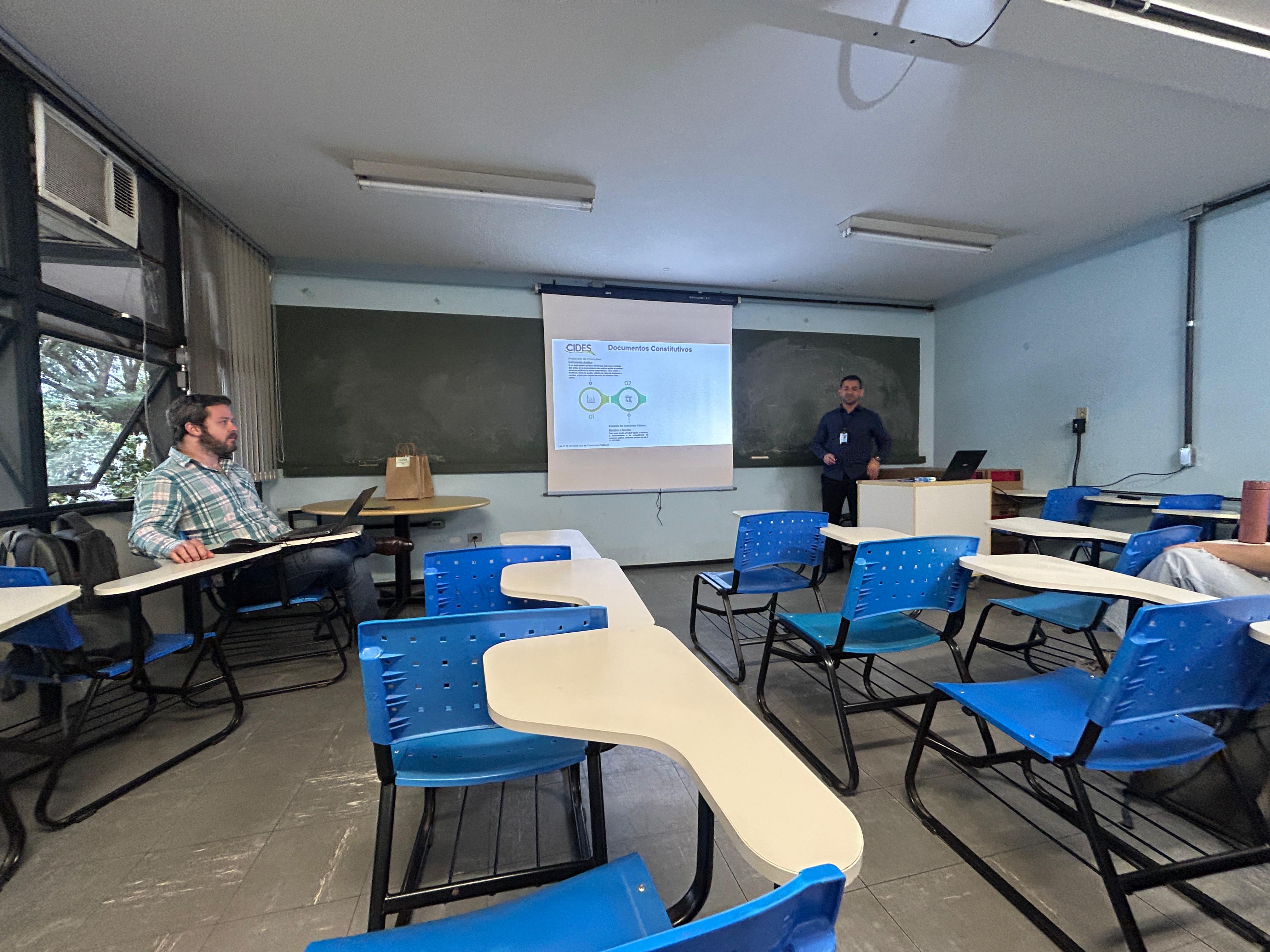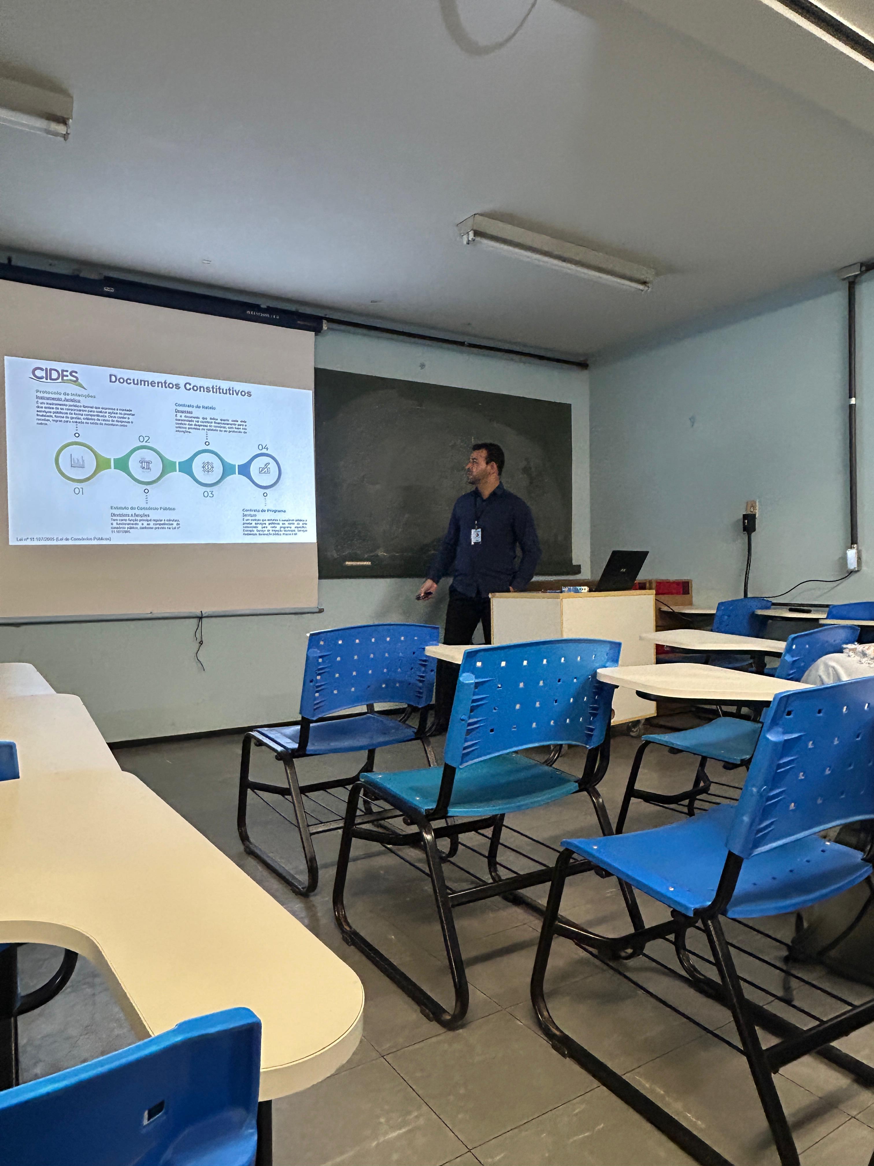 A apresentação foi conduzida pelo médico veterinário e gerente do SIM-CIDES, Fábio Silva, e teve como tema central o papel do Serviço de Inspeção no contexto dos consórcios públicos e a atuação do médico veterinário na rotina de inspeção de produtos de origem animal.