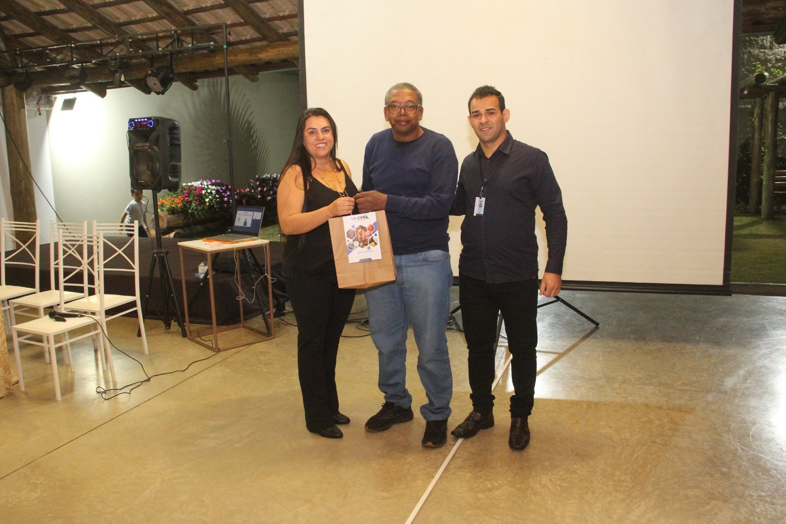 Ao final, o coordenador Fábio, realizou sorteio de brindes para os participantes. Os brindes eram compostos de produtos de origem animal, de estabelecimentos registrados no SIM-CIDES.